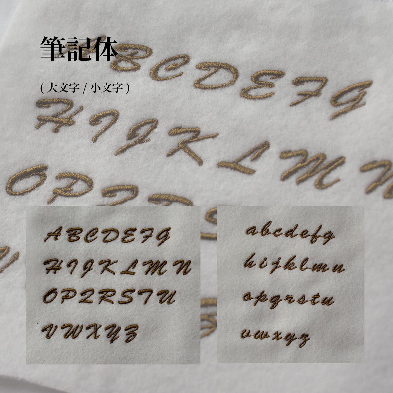お名前を筆記体で刺繍し、世界にひとつだけのオリジナルアイテムに仕上げます。