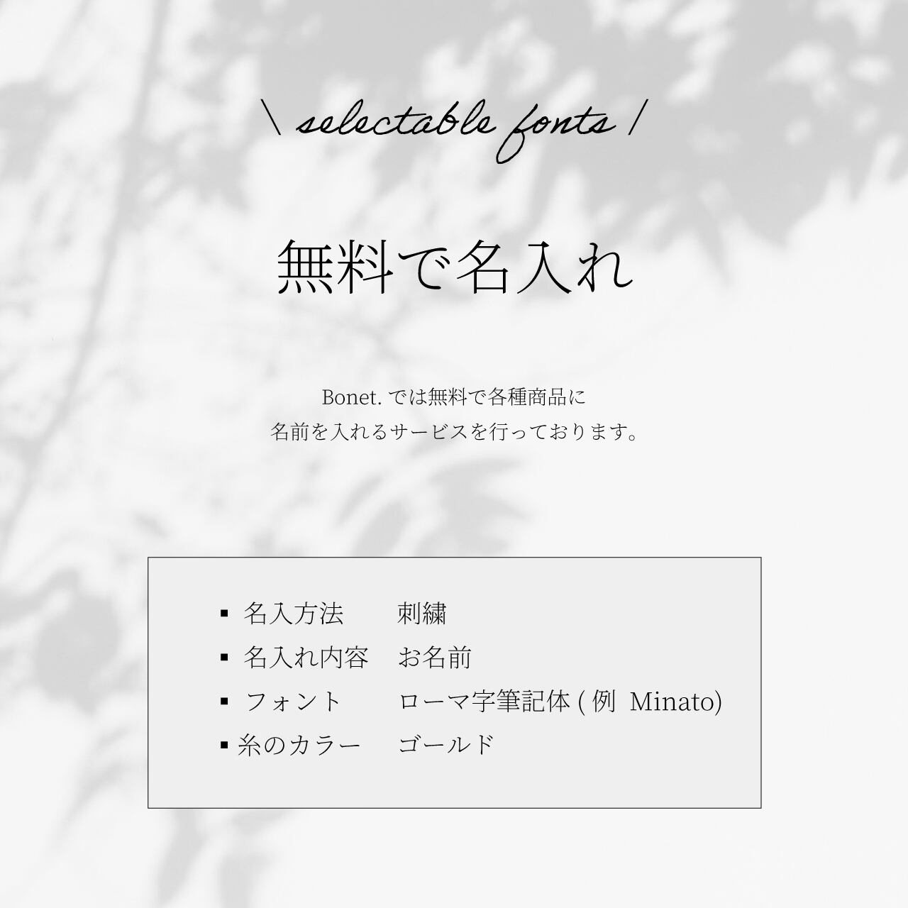 文字数によって刺繍文字サイズが若干異なります。