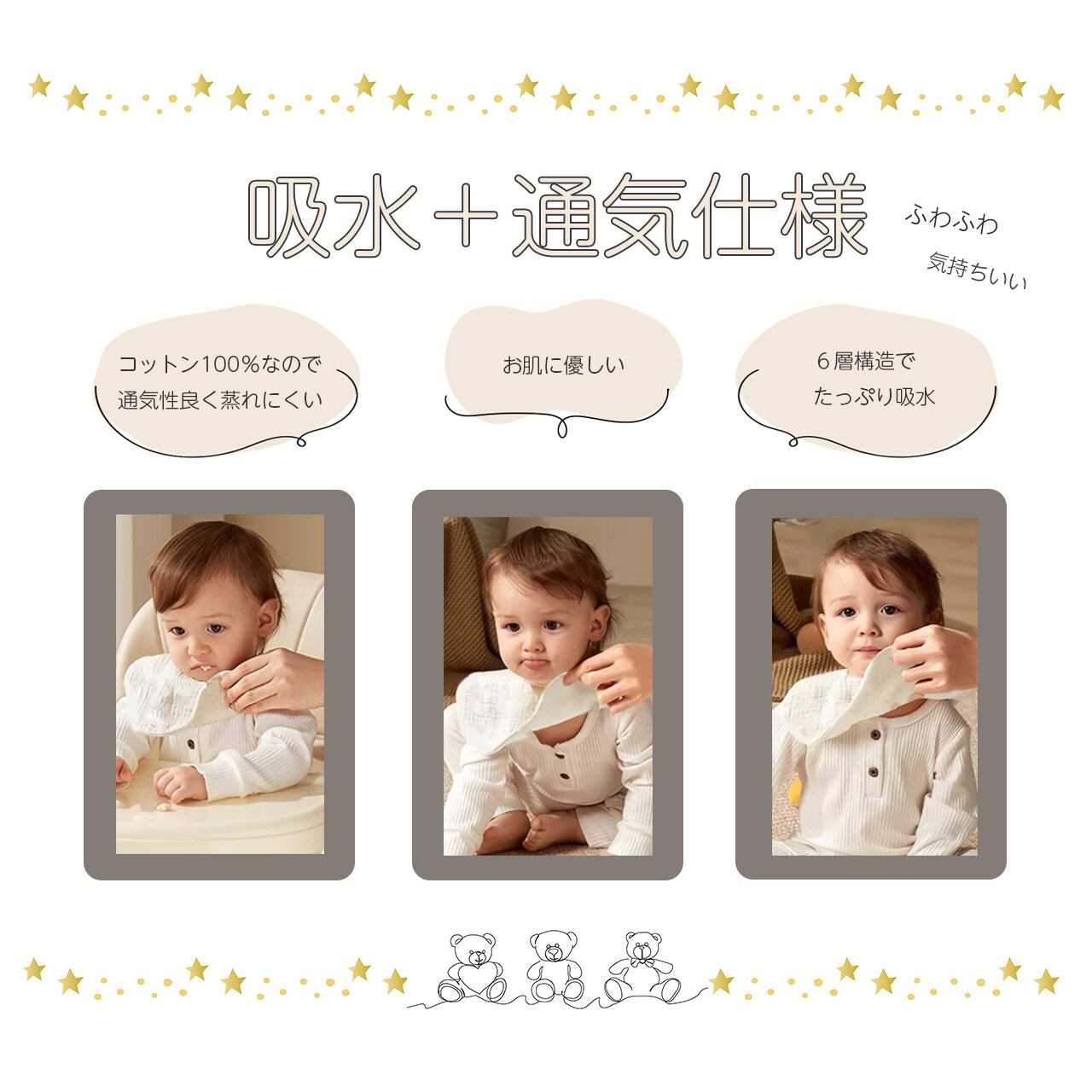 食事用エプロン 食事用ビブ bib よだれかけ 北欧 ガーゼスタイ